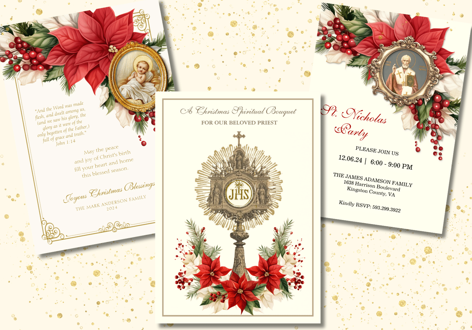 Sending a Christmas card becomes a small work of mercy: a reminder that someone is remembered, prayed for, and loved in the Heart of Christ. As you prepare for the Nativity of the Lord, may these designs help you share that holy joy with your family, friends, parish community, and all those you hold dear.